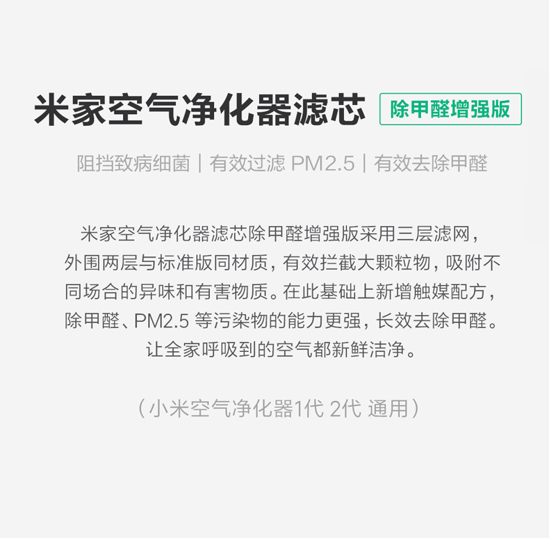 • 颜色分类:标准版滤芯 除甲醛增强版 抗菌版 除甲醛增强版(西安自提)