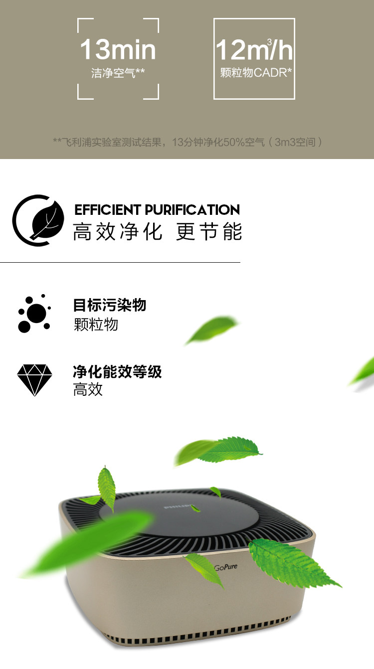 飞利浦汽车车载空气净化器车内除甲醛PM2.5去除烟味雾霾GPC80正品
