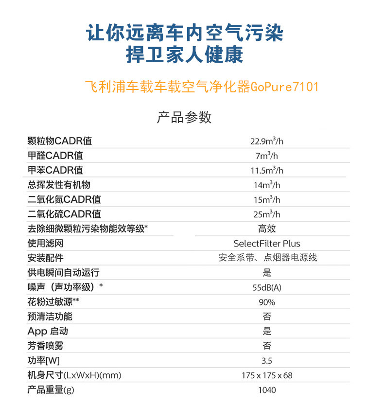 [飞利浦电器车用氧吧,空气净化器]飞利浦GP7101车载空气净化器车用月销量4件仅售780元