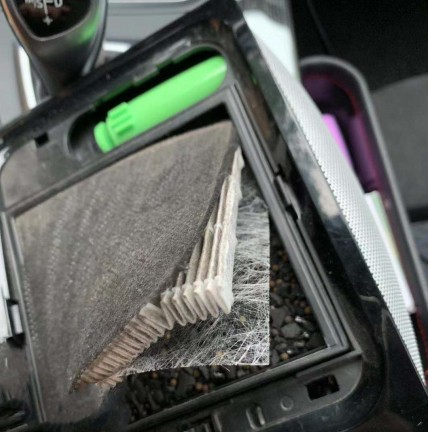 把废掉的过滤网拆开可以看出里面的用料非常足!三层过滤材质和独特的活性炭成本。可以有效清除车内异味,甲醛,甲苯等有害物质。这些关系个人健康的东西不建议贪便宜。