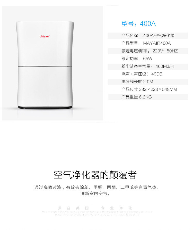 MayAir英国美埃空气净化负离子空气净化器 400B WiFi版