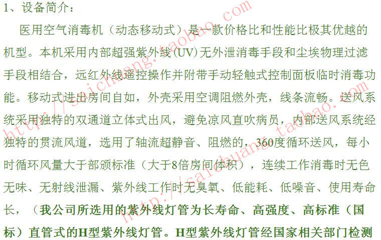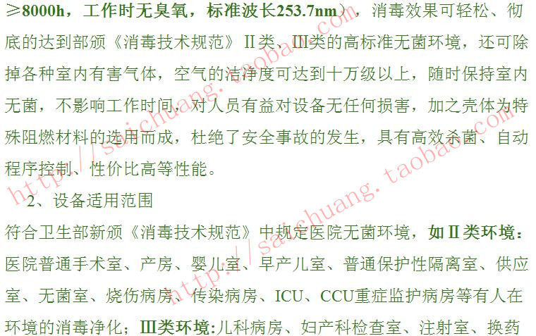 医用空气消毒机功能与技术参数