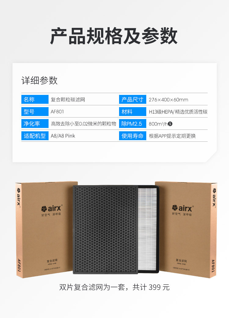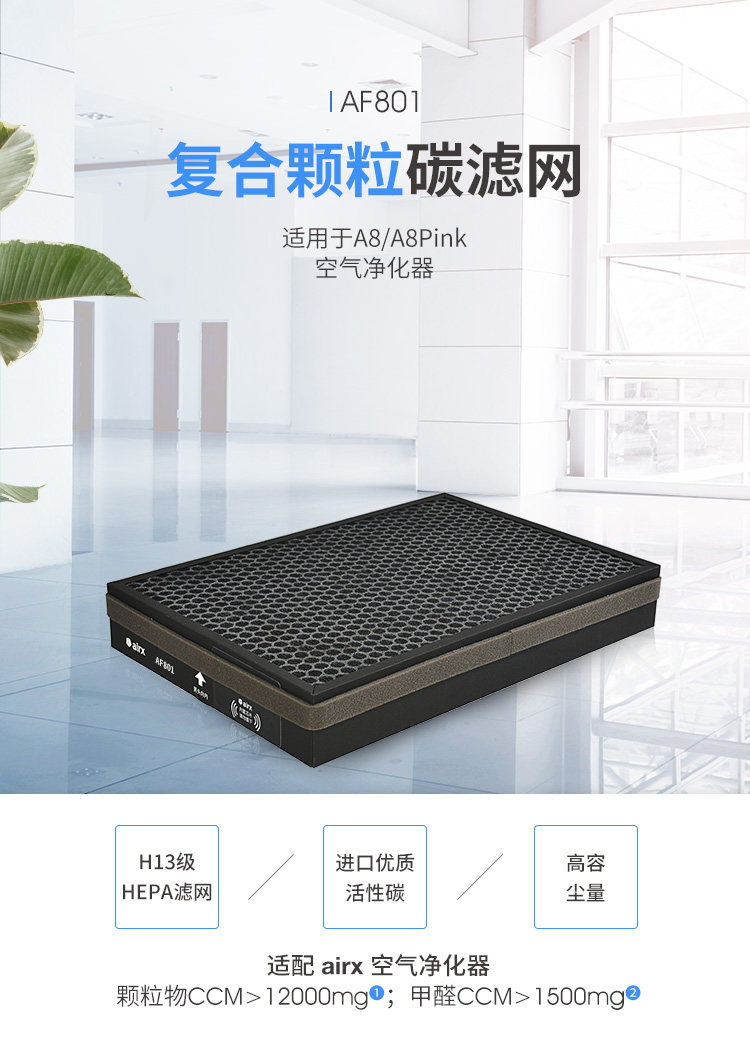 airx AF801 复合颗粒碳滤网 适配 A8 空气净化器(1套2片)