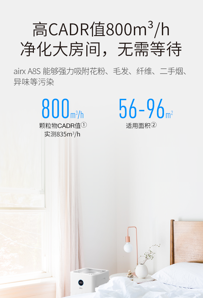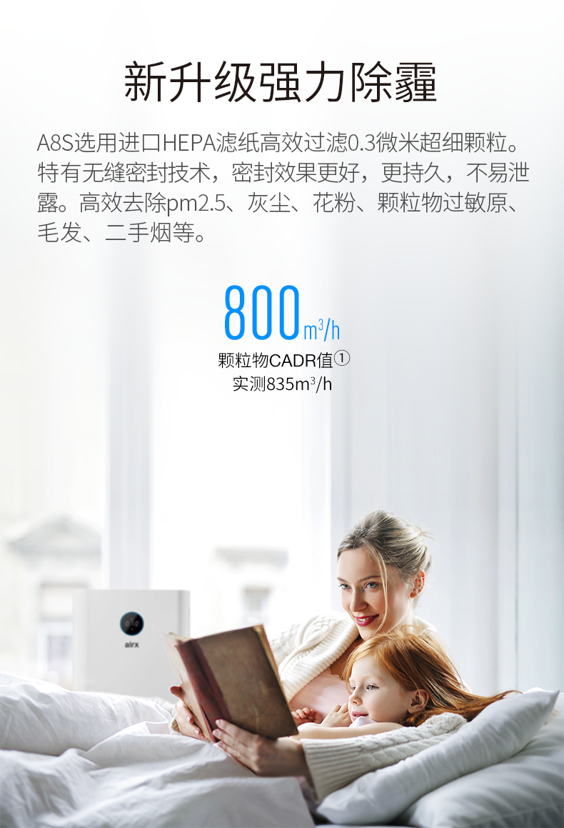 airx A8S空气净化器除霾增强版 家用卧室除甲醛 PM2.5除尘净化机