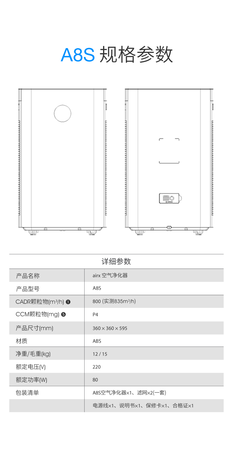 [airx旗舰店空气净化,氧吧]airx A8S空气净化器除霾增强版月销量13件仅售2999元