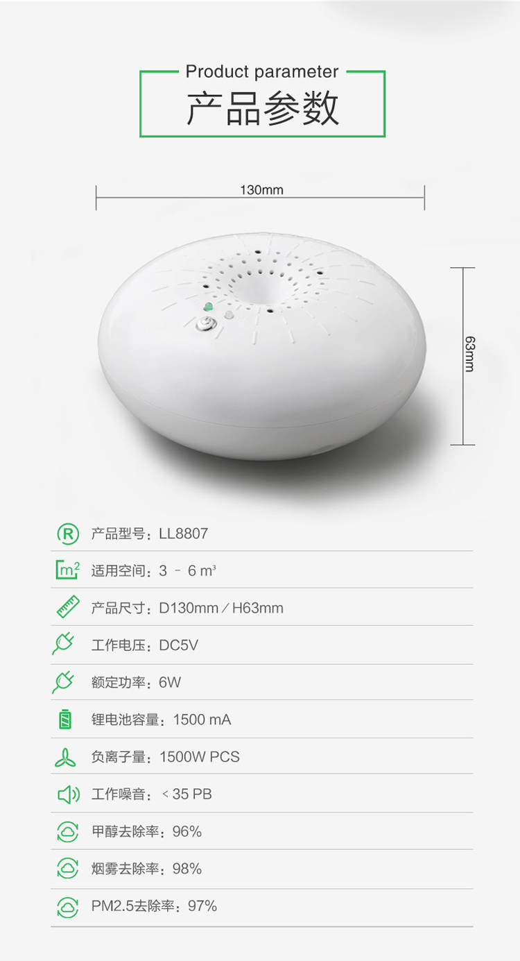 • 功能:消除异味 过滤灰尘 吸收TVOC气体