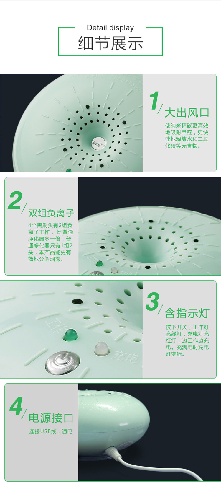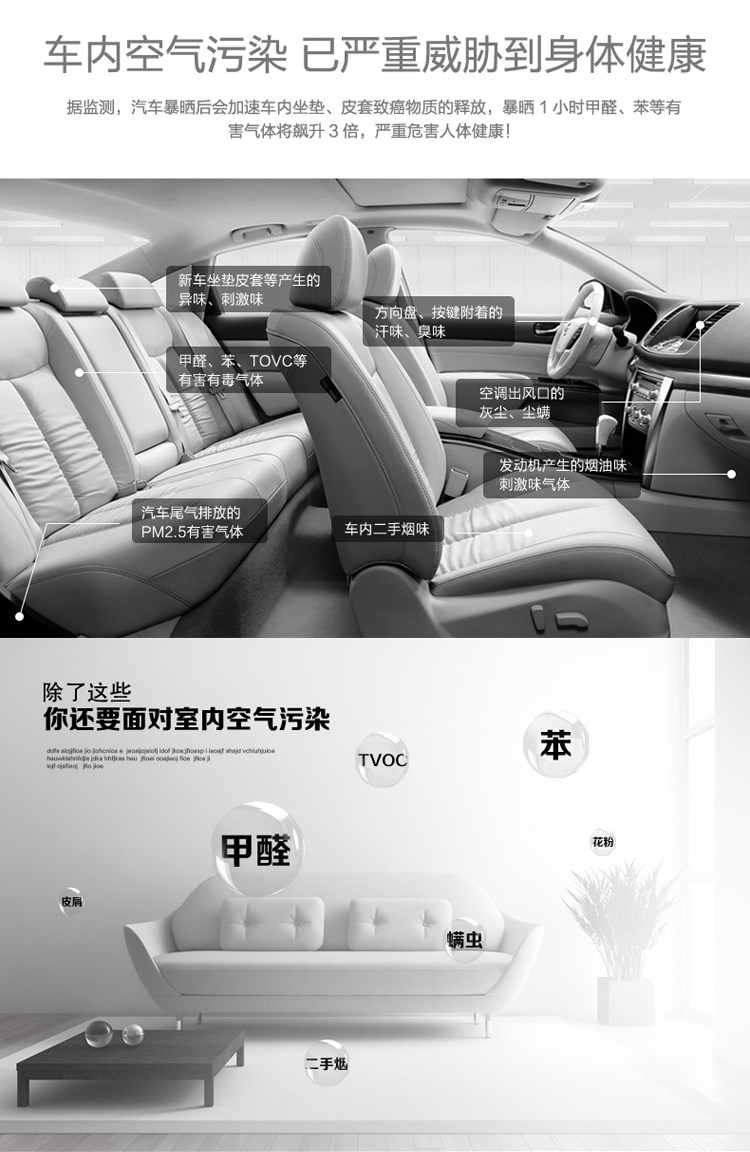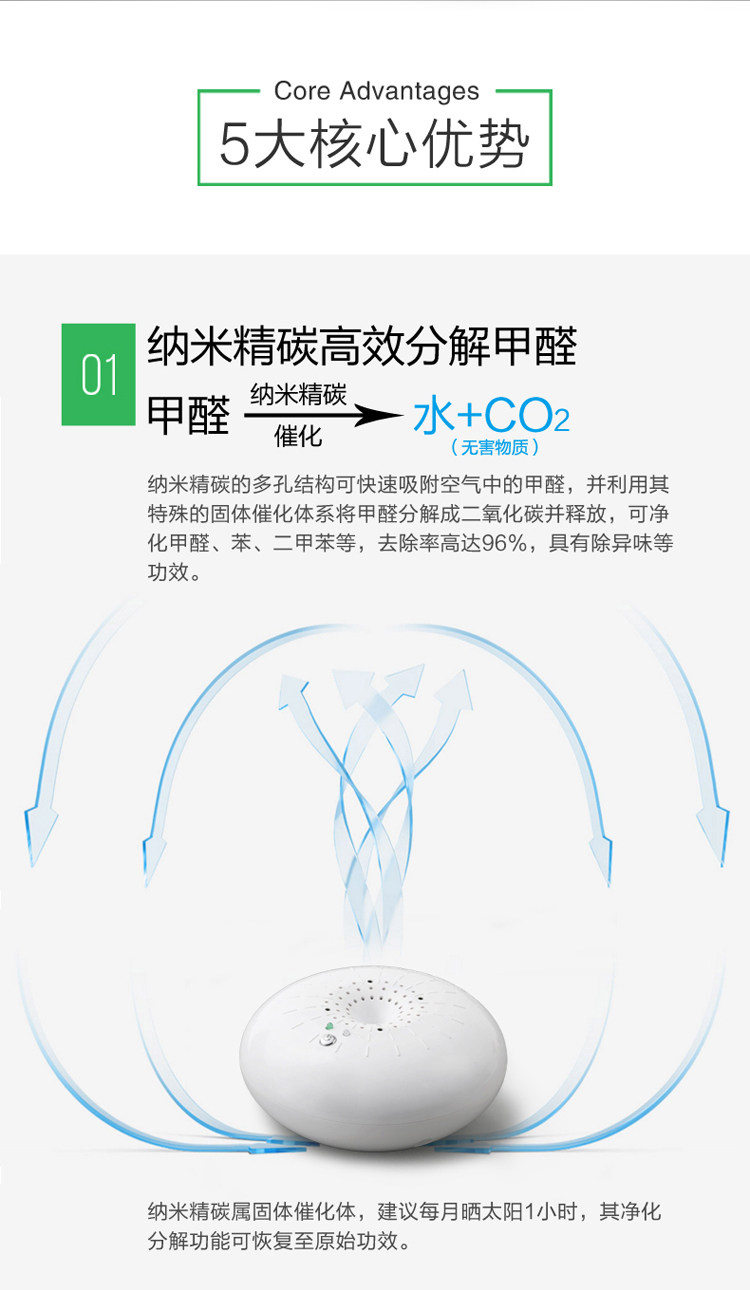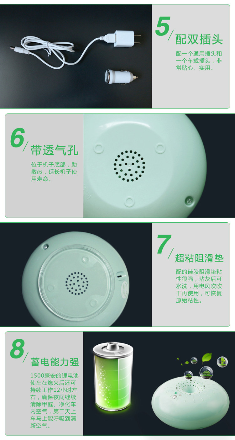 纳米精碳负离子空气净化器家用除甲醛太阳能车载空气净化器除异味