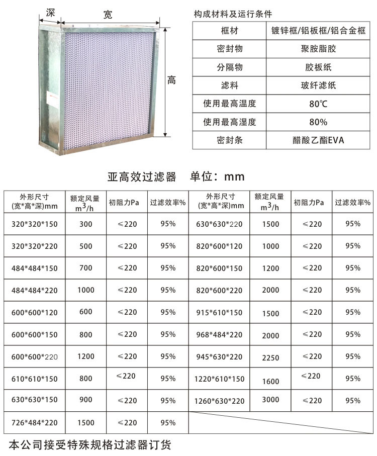 高效过滤器亚高效过滤器是一种净化设备 ,它对空气中粒径为0.3μm的微粒过滤效率达到99.99%以上,主要应用于