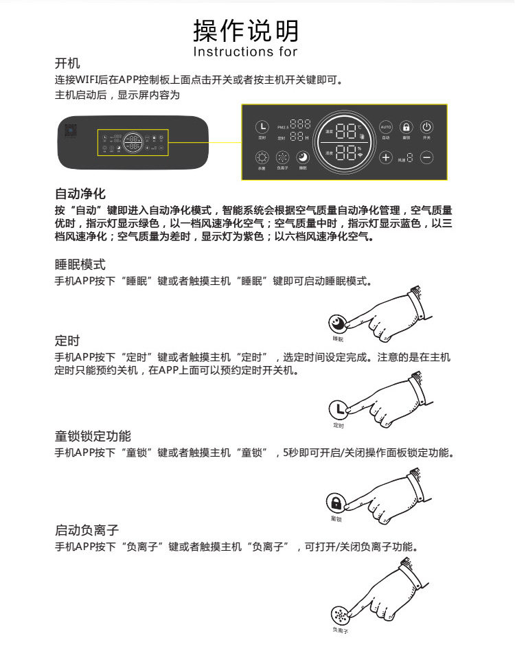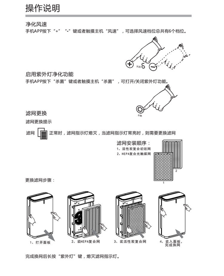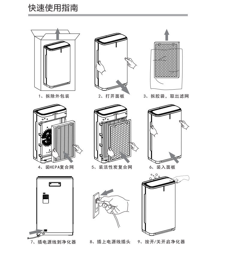 • 工作原理:静电技术 活性炭 负离子 HEPA技术