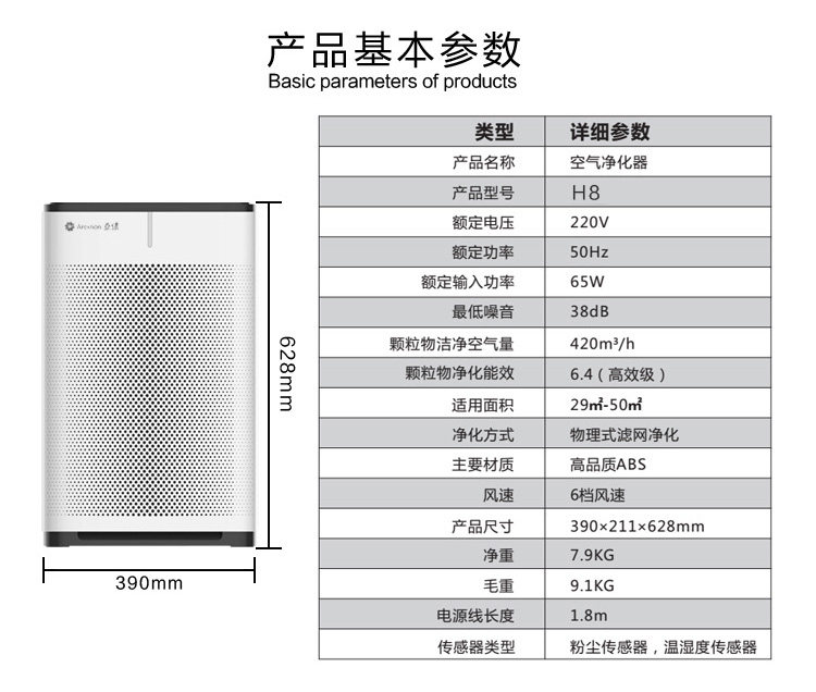 [亚侬空气净化器空气净化,氧吧]亚侬Arexnon 空气净化器H8 月销量0件仅售6980元