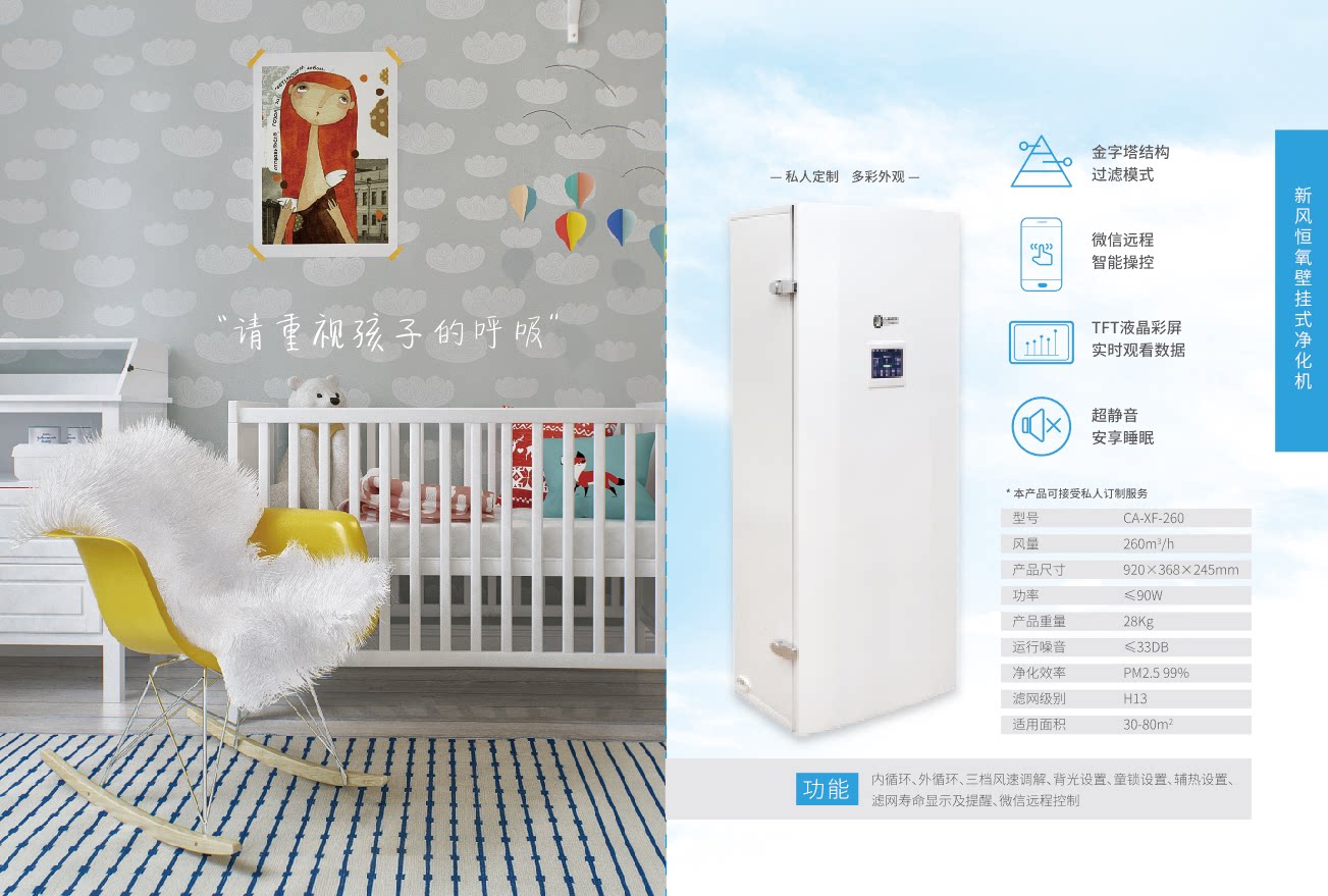 • 功能:定时 除VOC 除花粉 除颗粒物 除甲醛 除烟除尘 杀菌 加氧 除雾霾 除菌