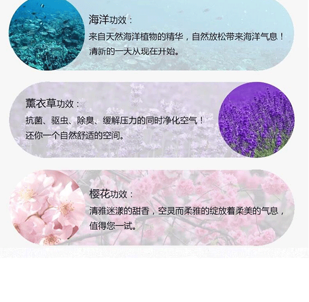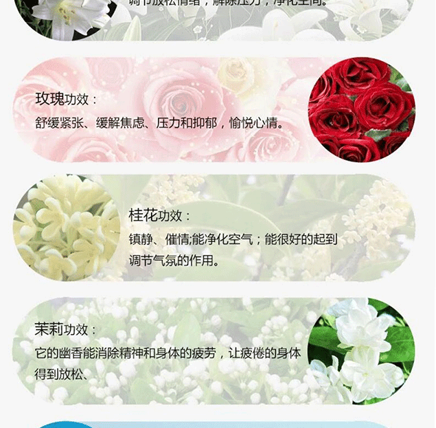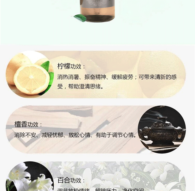 • 香味:古龙香 栀子花(清香) 海洋 熏衣草(助睡眠) 檀香(提神) 2瓶以上送香薰灯 玫瑰 茉莉 桂花 百合