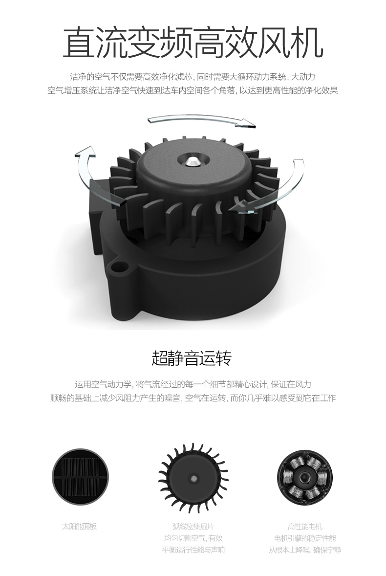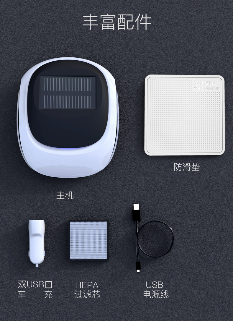 太阳能车载空气净化器 主要功能: