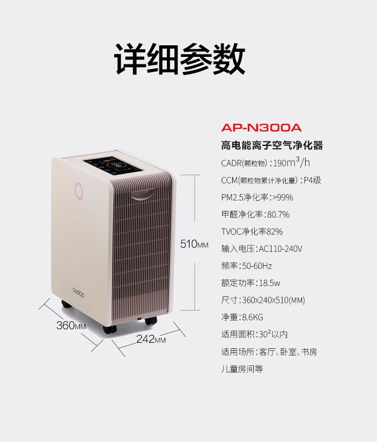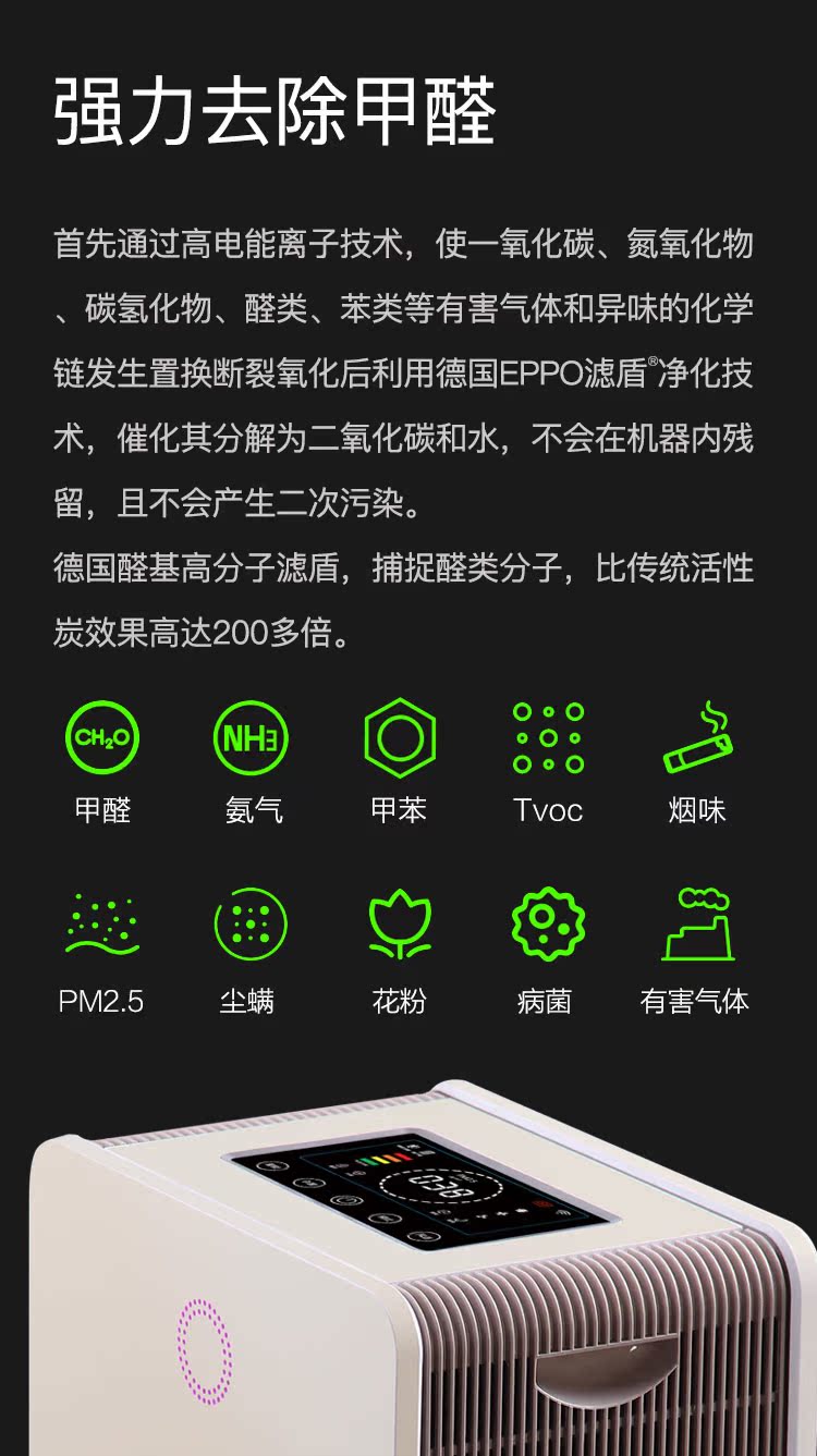 • 功能:定时 除花粉 除甲醛 除烟除尘 杀菌