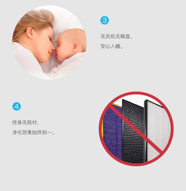 COCLEAN无风机滤网,无需更换耗材,相比传统净化器比无需二次消费。
