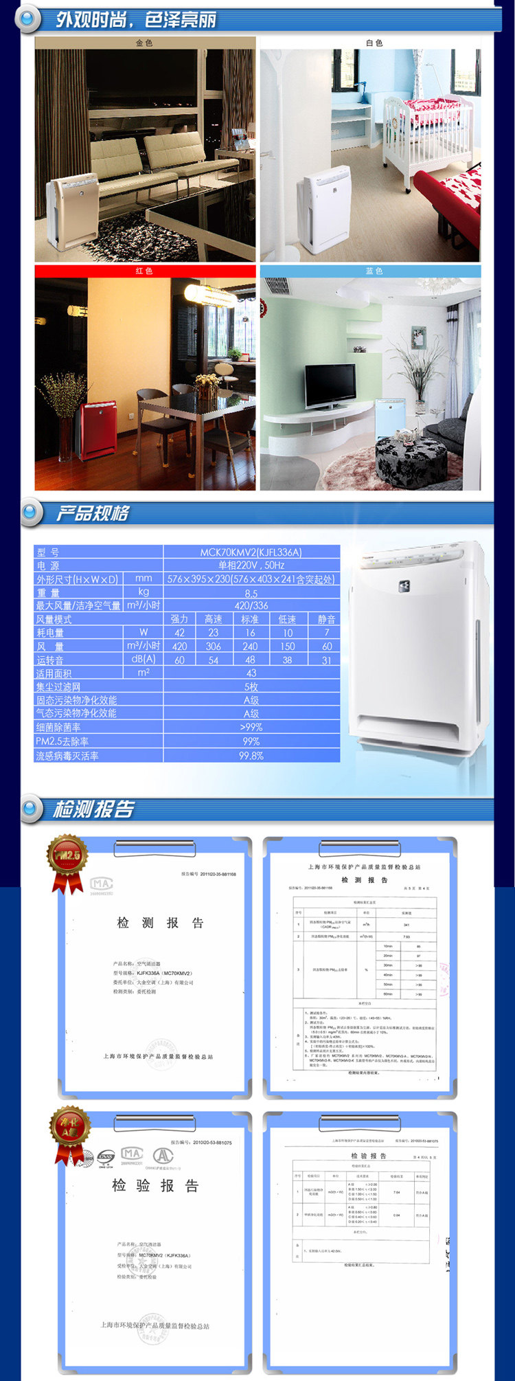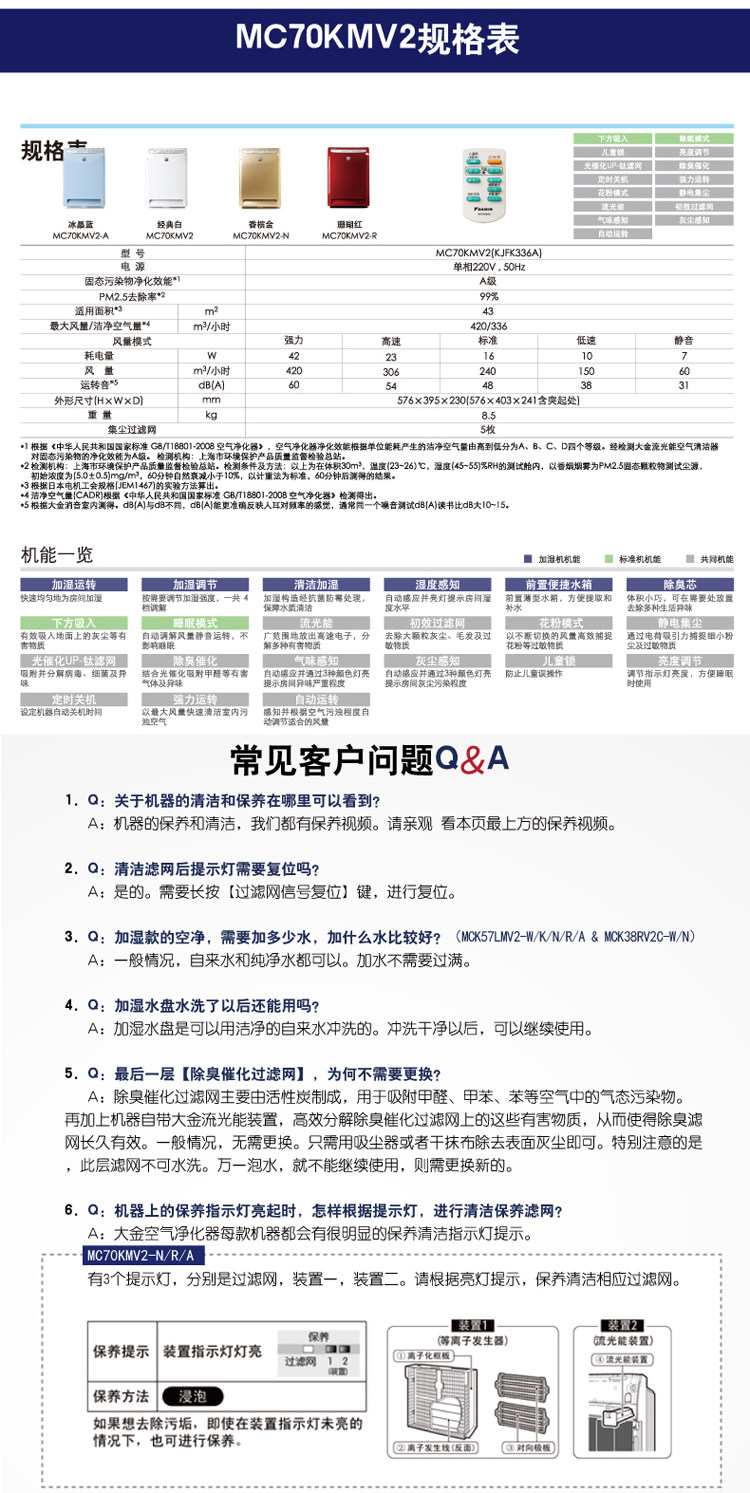 <1>大金空气净化器经典款,6重超强分解式过滤,连续多年热卖爆款。