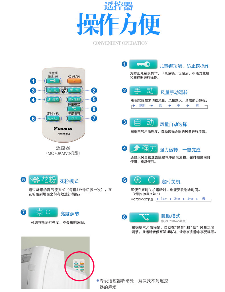 [大金迈杰宝专业店空气净化,氧吧]大金空气净化器70家用静音祛除雾霾除月销量0件仅售1650元