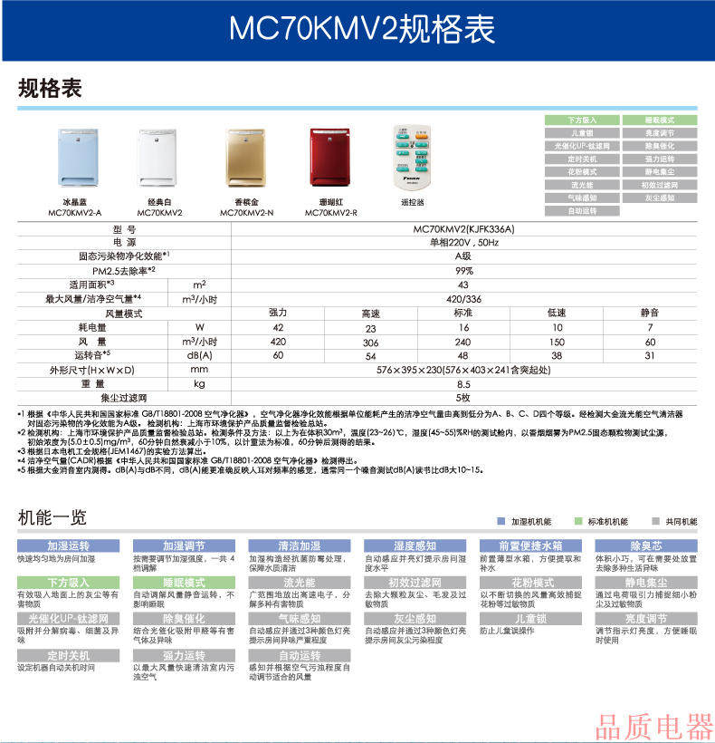 • 产品名称:Daikin/大金 MC70KMV2-N