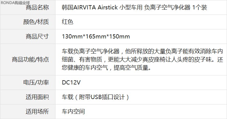 [RONDA购遍全球车用氧吧,空气净化器]韩国进口AIRVITA Airsti月销量1件仅售401元
