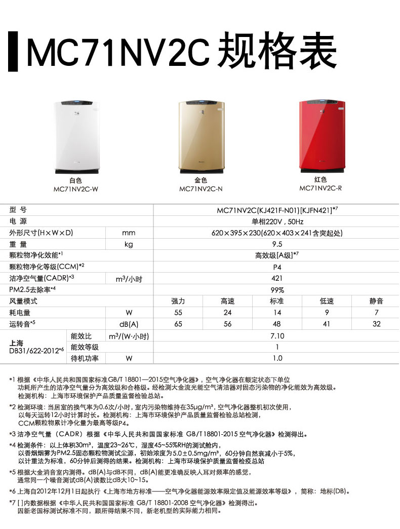 清仓包装欠佳Daikin/大金 MC71NV2C空气净化器