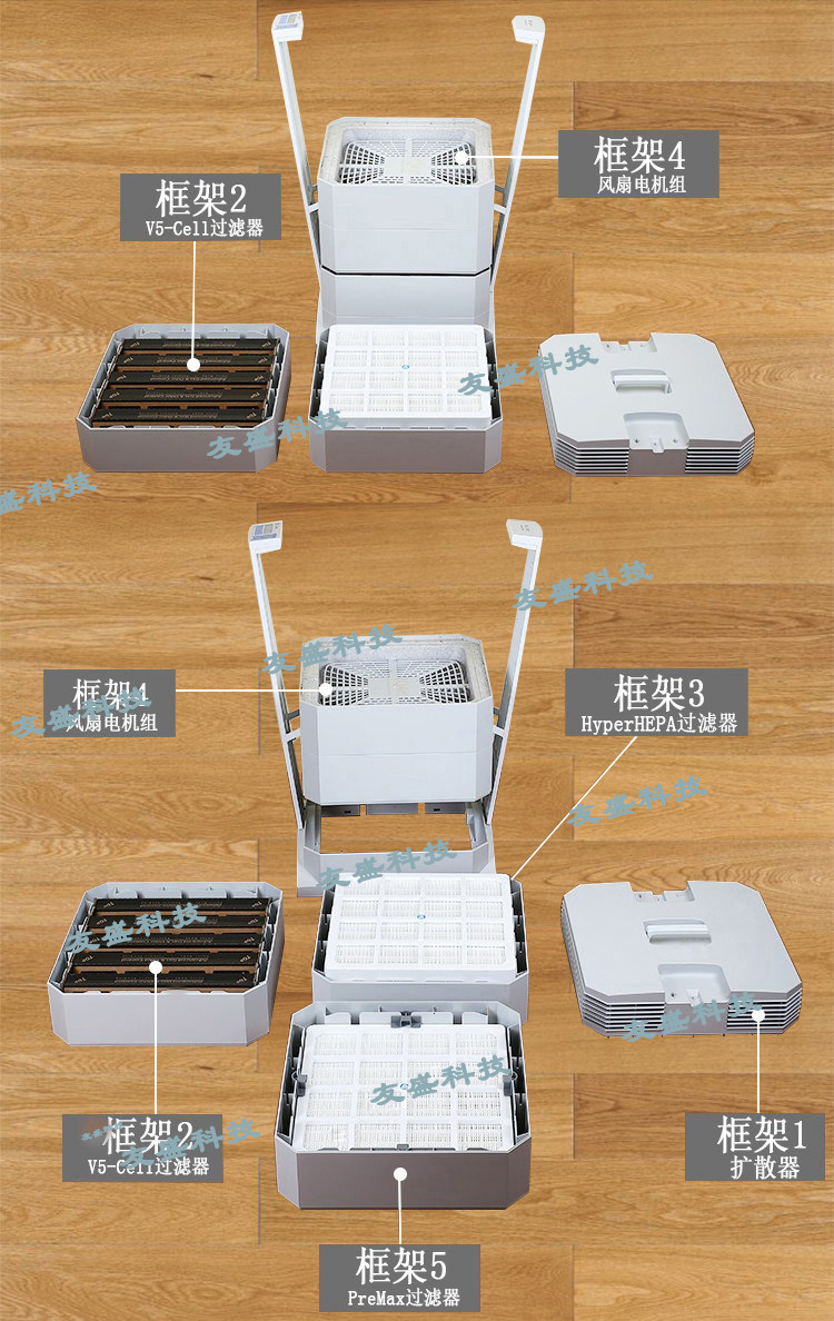 第二层V5-Cell活性炭滤芯,用于吸附和过滤有害气体,甲醛,苯等
