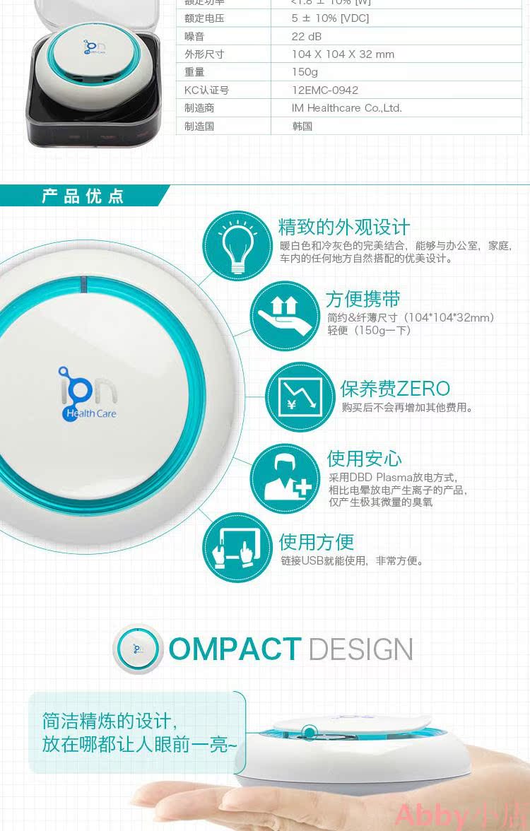 韩国进口DR.USB迷你空气净化器等离子发生器车载家用除甲醛PM2.5