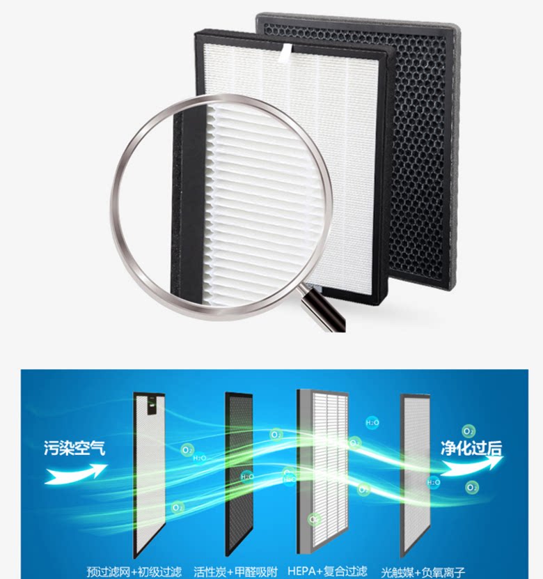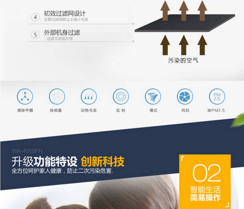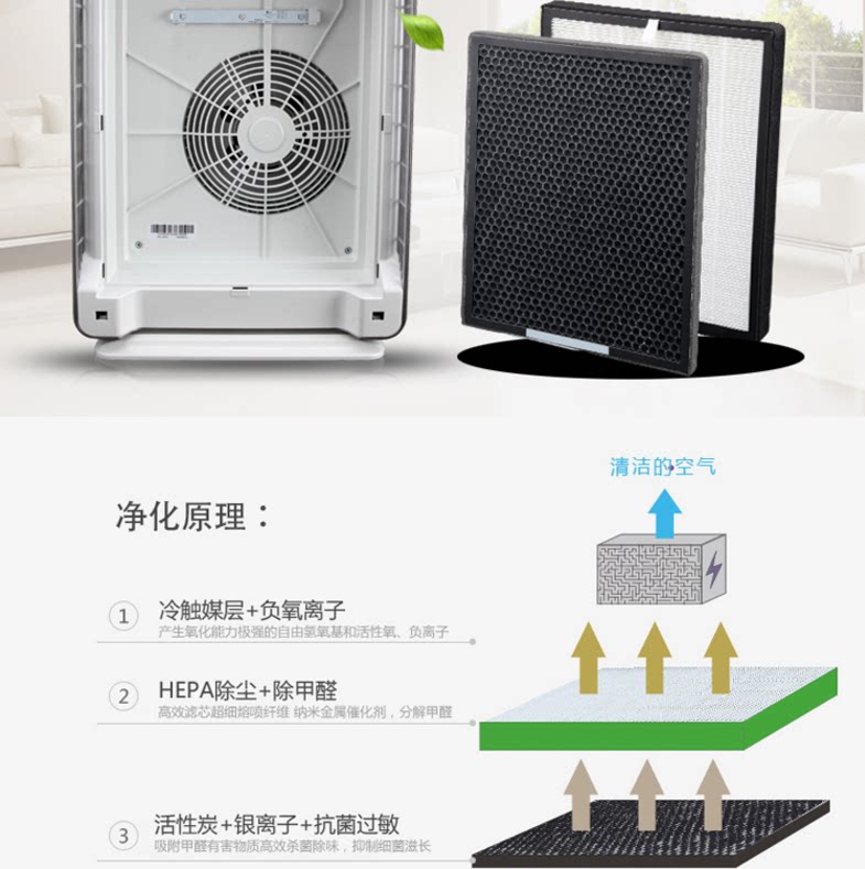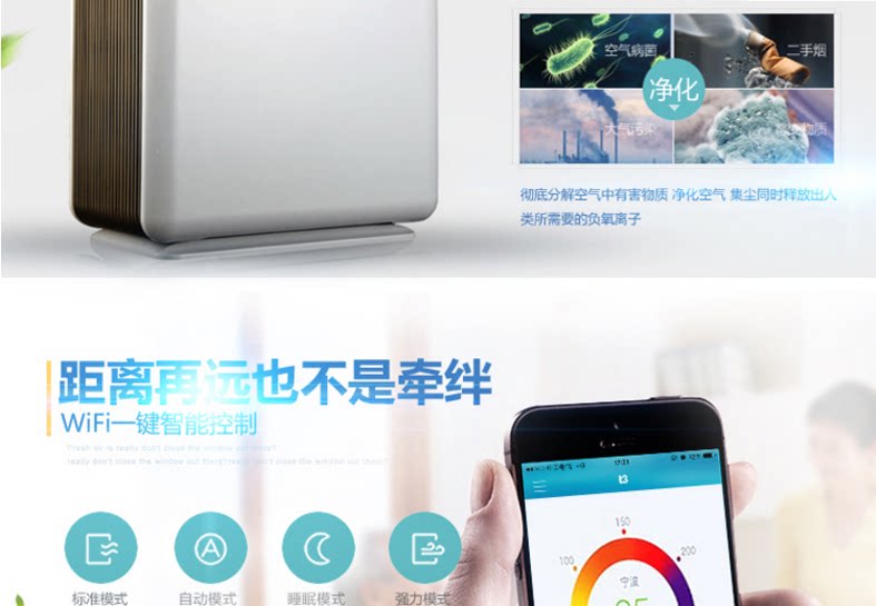 • 功能:缺氧监测 定时 除花粉 除甲醛 除烟除尘 杀菌 加氧