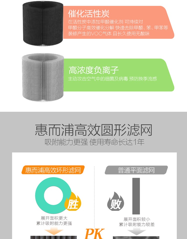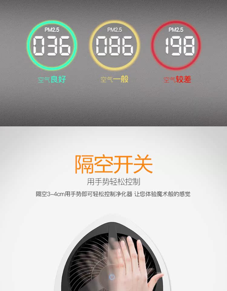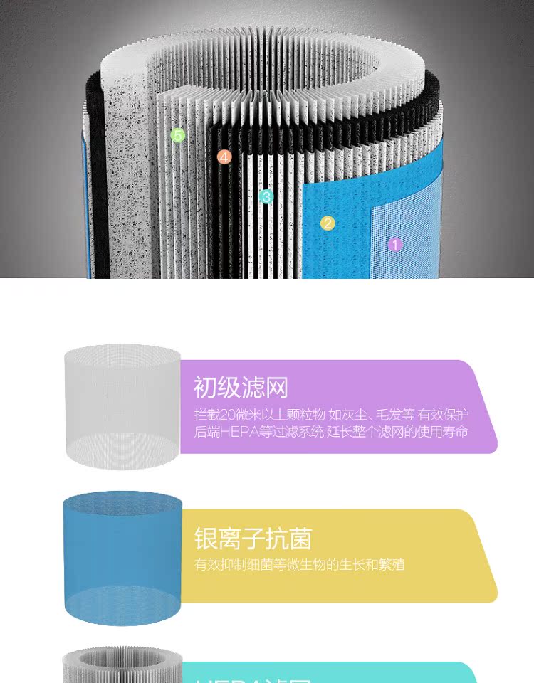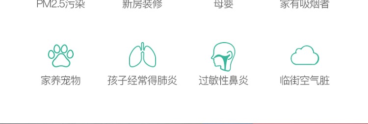 • 功能:除VOC 除花粉 除颗粒物 除甲醛 除烟除尘 杀菌 除雾霾 除菌