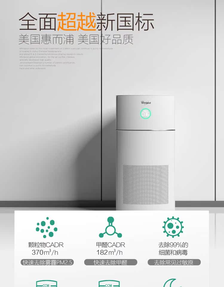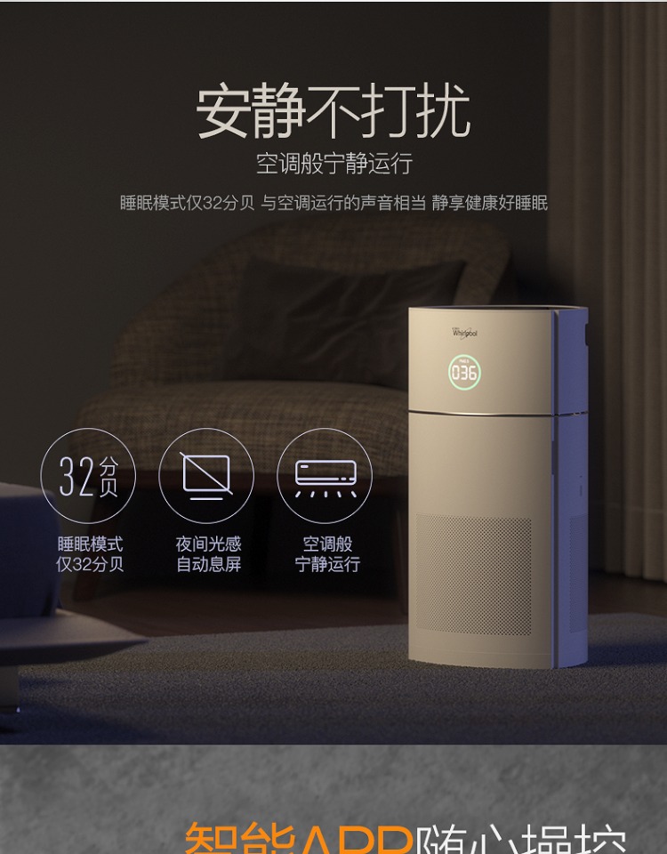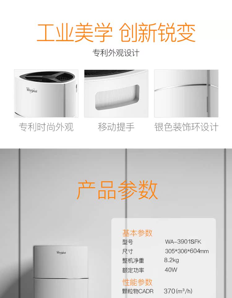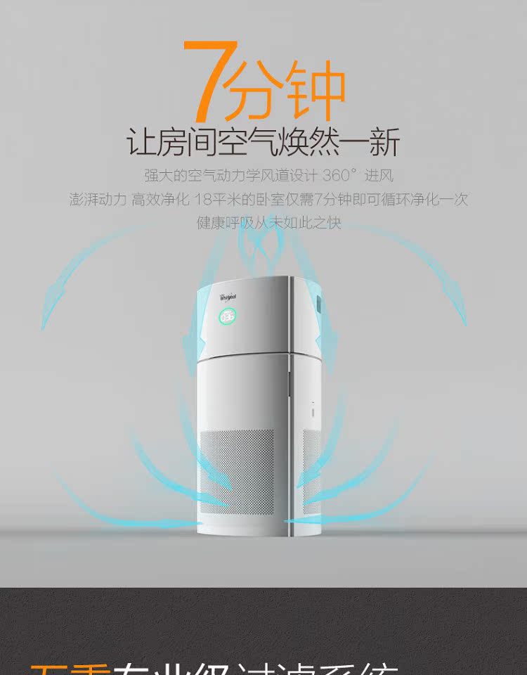 [惠而浦(Whirlpool)官方店空气净化,氧吧]【官方发】惠而浦空气净化器wa-39月销量5件仅售1999元