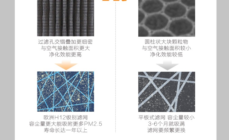 • 工作原理:活性炭 负离子 HEPA技术 其他