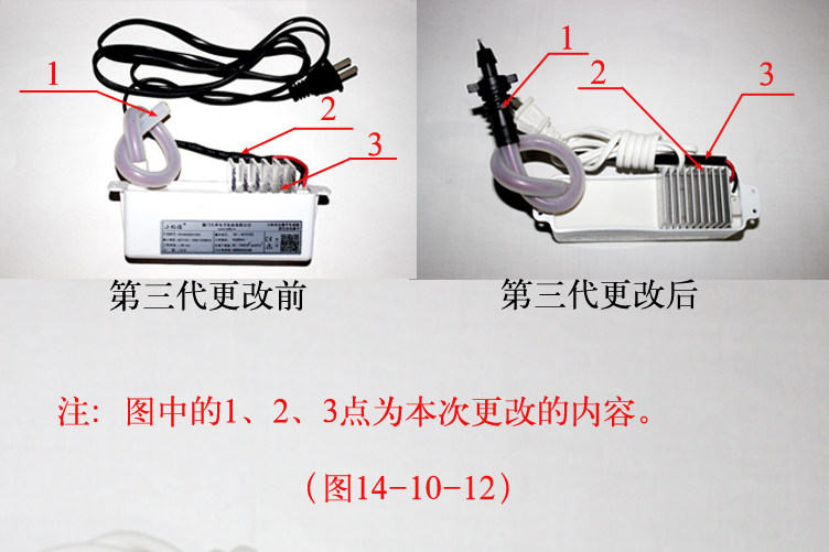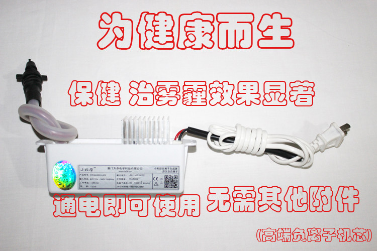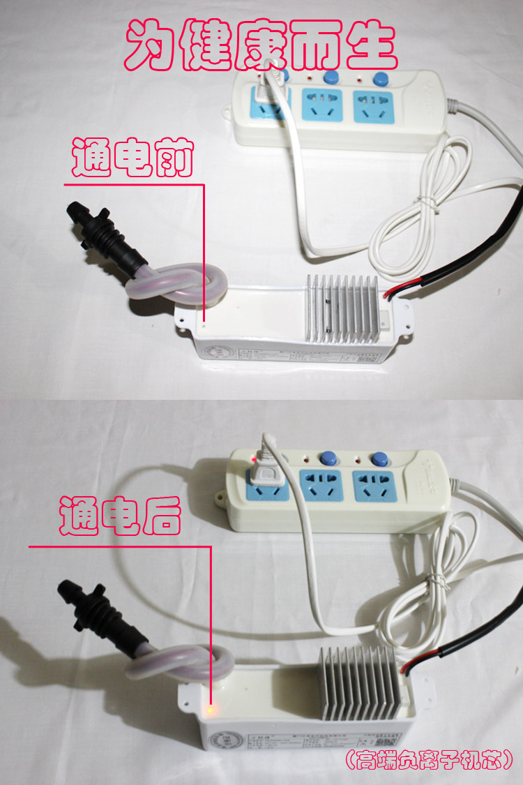 1-1、本产品为第三代小粒径负氧离子,使用时直接通电就可以,但是必须得注意把负离子释放端解开,负离子释放端不得触碰到金属散热器上,也不得碰到外界金属物体或者其他物体,悬空就可以。