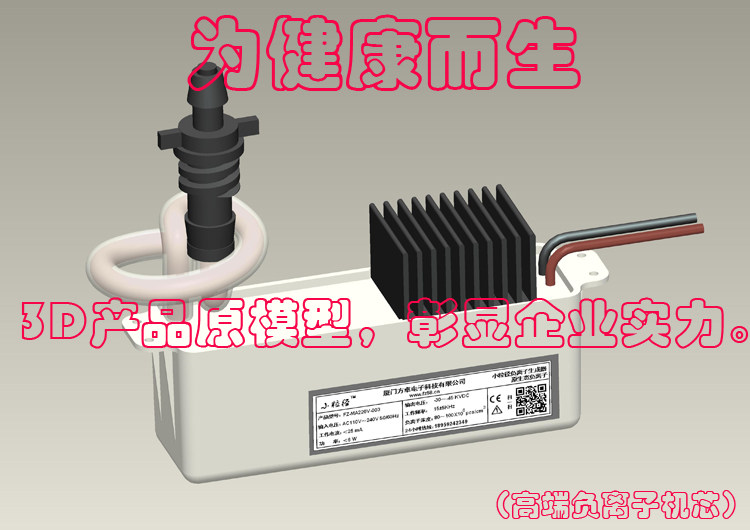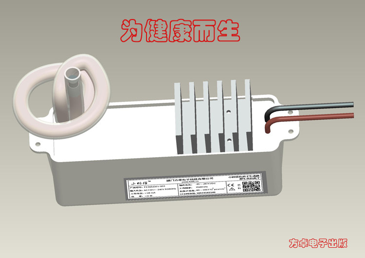 本款产品为本公司2014又一力作,为健康而生 即“小粒径负离子发生器”。是我司新创的第三代负离子发生器,具有节能发热量低,因第三代小粒径负氧离子采用全固态设计电路,负离子发射量为第二代产品的2.6倍,能耗为第二代产品的0.75(功耗4.5W,功耗降下了,释放量上去了,真正的节能。),可24小时全天工作。凭借着其低耗高效,低发热量高浓度的优势被广泛应用于医疗、通风系统、净化器、保鲜、航空、家禽业、种植业。