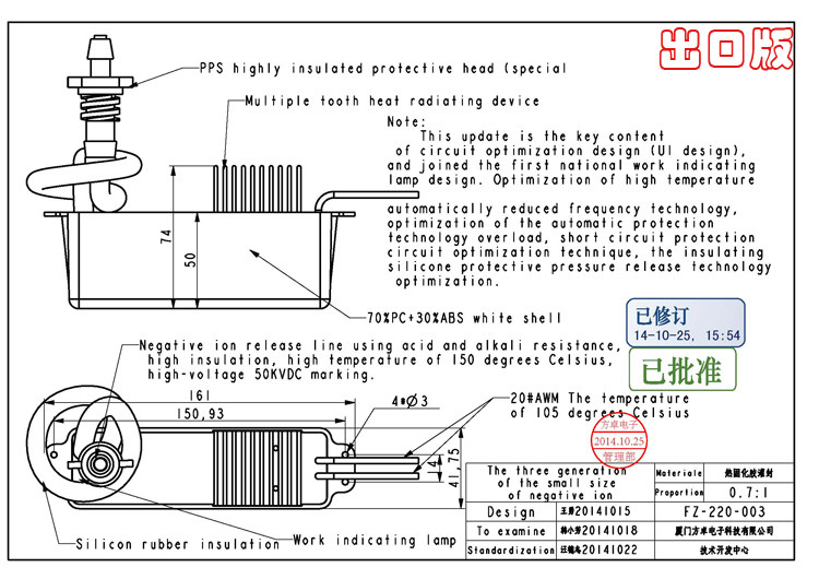 第三代小粒径高端负氧离子采用了全新技术领域,所属出口产品,也就是说符合国际标准,你要知道国外的人更怕死,请放心使用。第三代高端小粒径负离子机目前也已经推出有一段时间了,在这段时间中我们也积累了大量用户反馈的意见,本次增加了绝缘保护头以防止负离子长期工作释放头有异响,并保证了负离子长期工作表面不易粘附灰尘,从而不会衰减负离子的释放量。优化了负离子备压电路并增大了散热面积从而改善了负离子长期工作温度较高的缺陷。