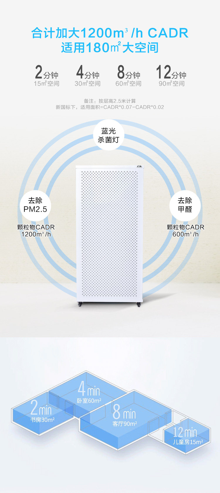 • 甲醛CADR值:600立方米/小时