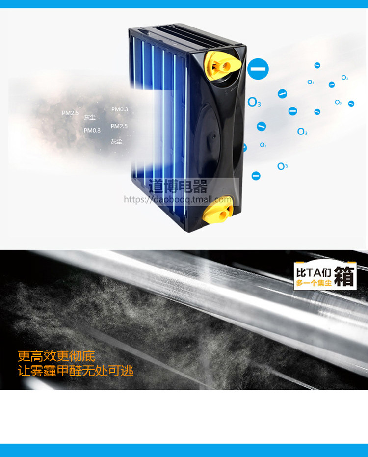 • 工作原理:静电技术 负离子 等离子 紫外线 光触媒