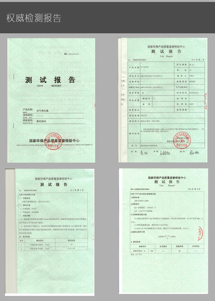 6. 双重负离子净化,24小时细菌去除率99%,24小时甲醛去除率98%。