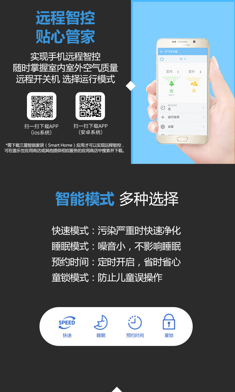• 功能:定时 除花粉 除甲醛 除烟除尘 杀菌