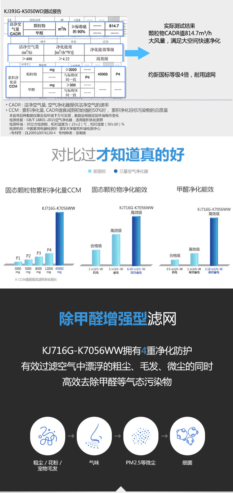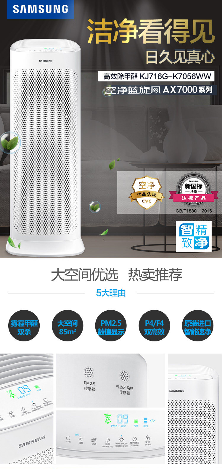三星KJ716G-K7056WW原装进口家用除甲醛杀菌过滤PM2.5空气净化器