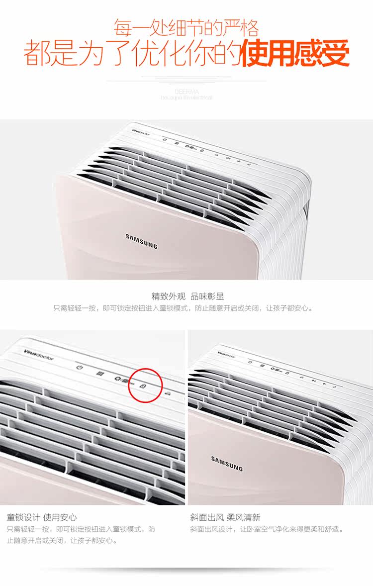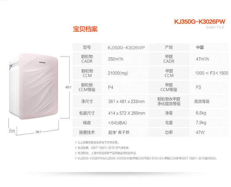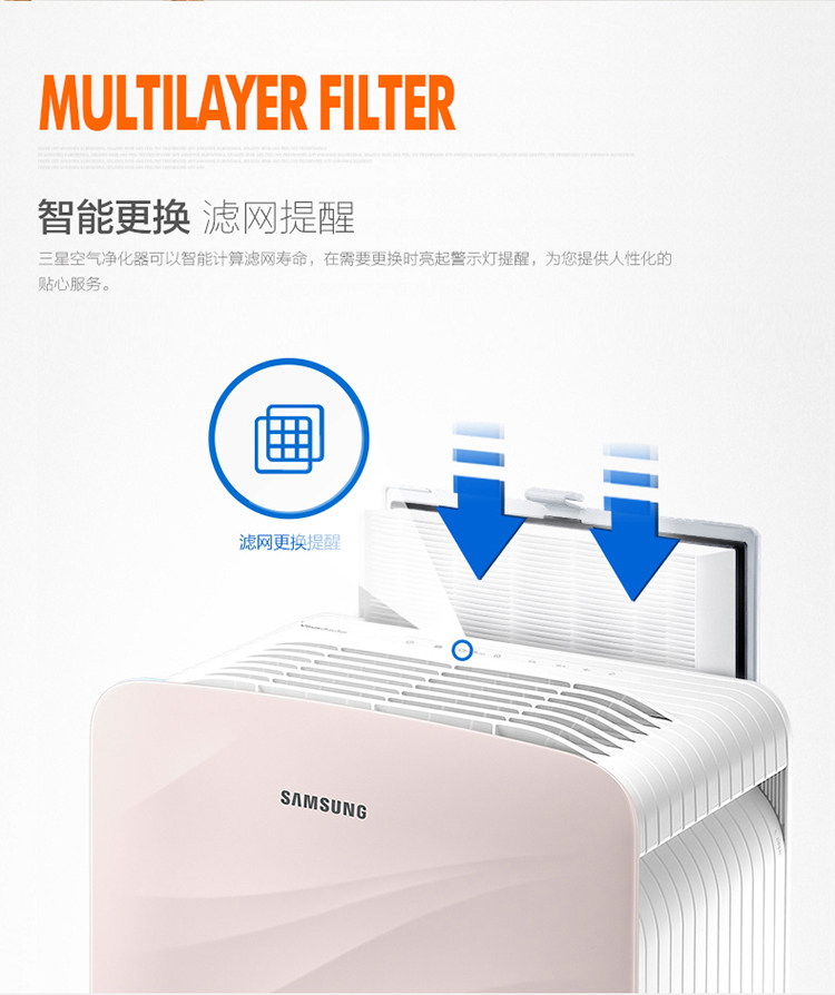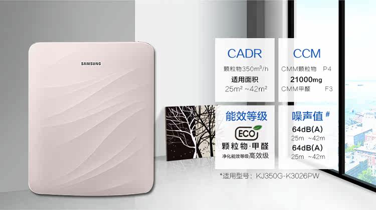 三星KJ350G-K3026WP家用静音除甲醛雾霾杀菌过滤PM2.5空气净化器