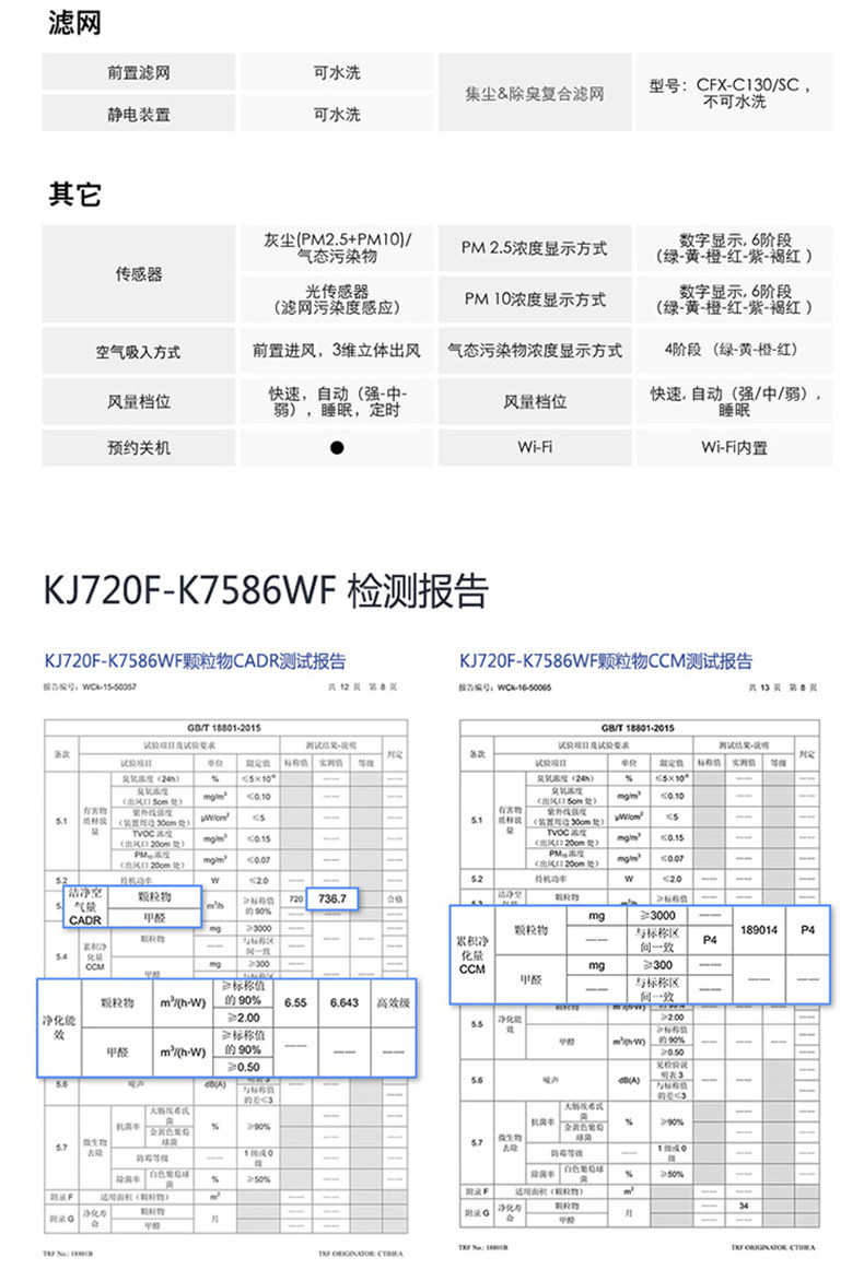 • 颗粒物CADR值:720立方米/小时