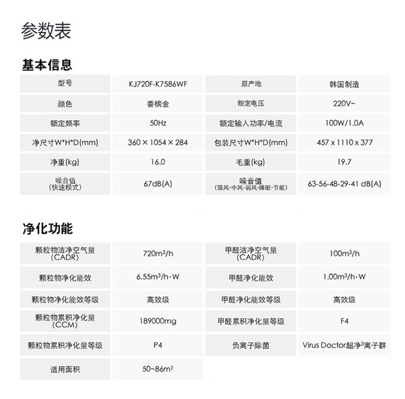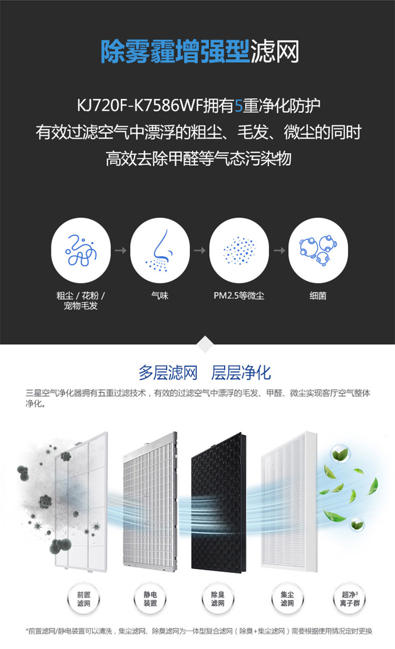 三星空气净化器高端家用除雾霾甲醛智能KJ720F-K7586WF大面积净化