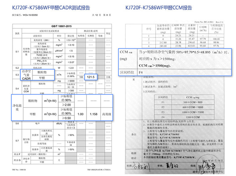 • 甲醛CADR值:100立方米/小时
