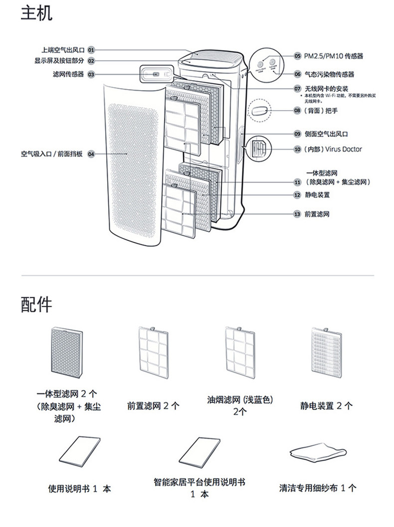 • 功能:定时除花粉除甲醛除烟除尘杀菌