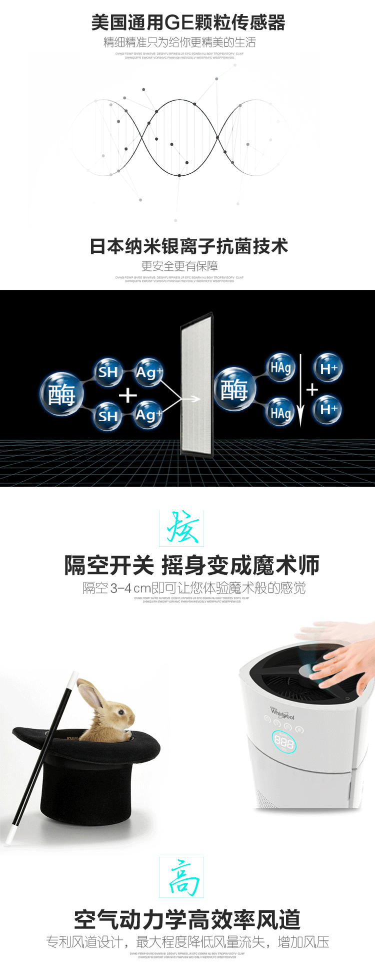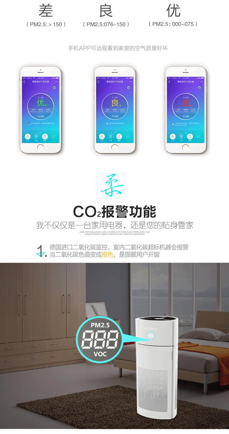 • 功能:除VOC 除花粉 除颗粒物 除甲醛 除烟除尘 杀菌 除雾霾 除菌, 负离子 除菌