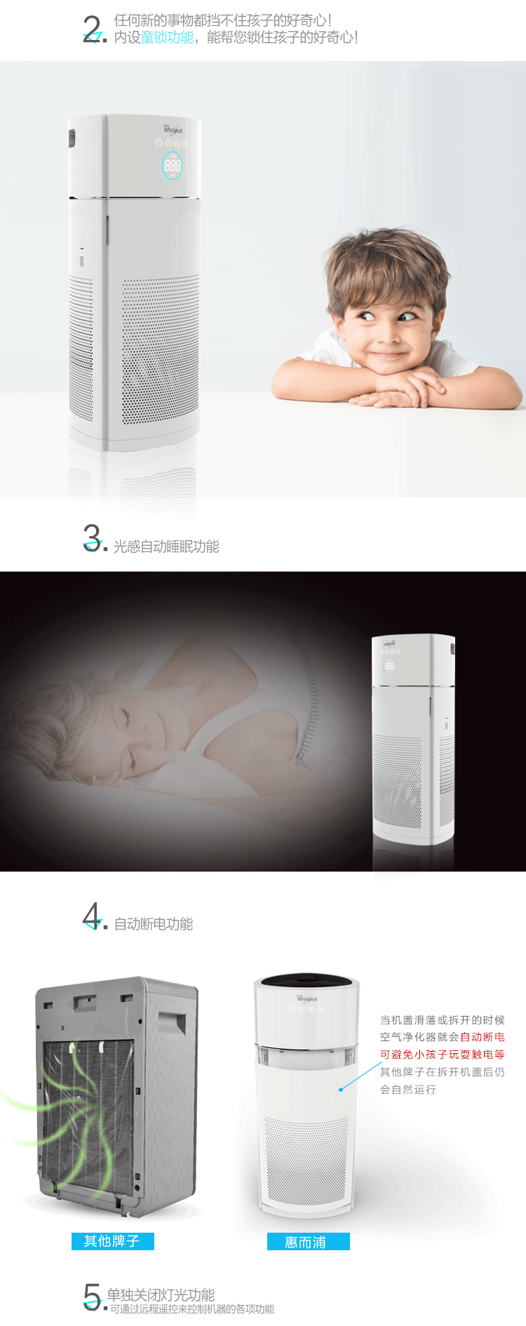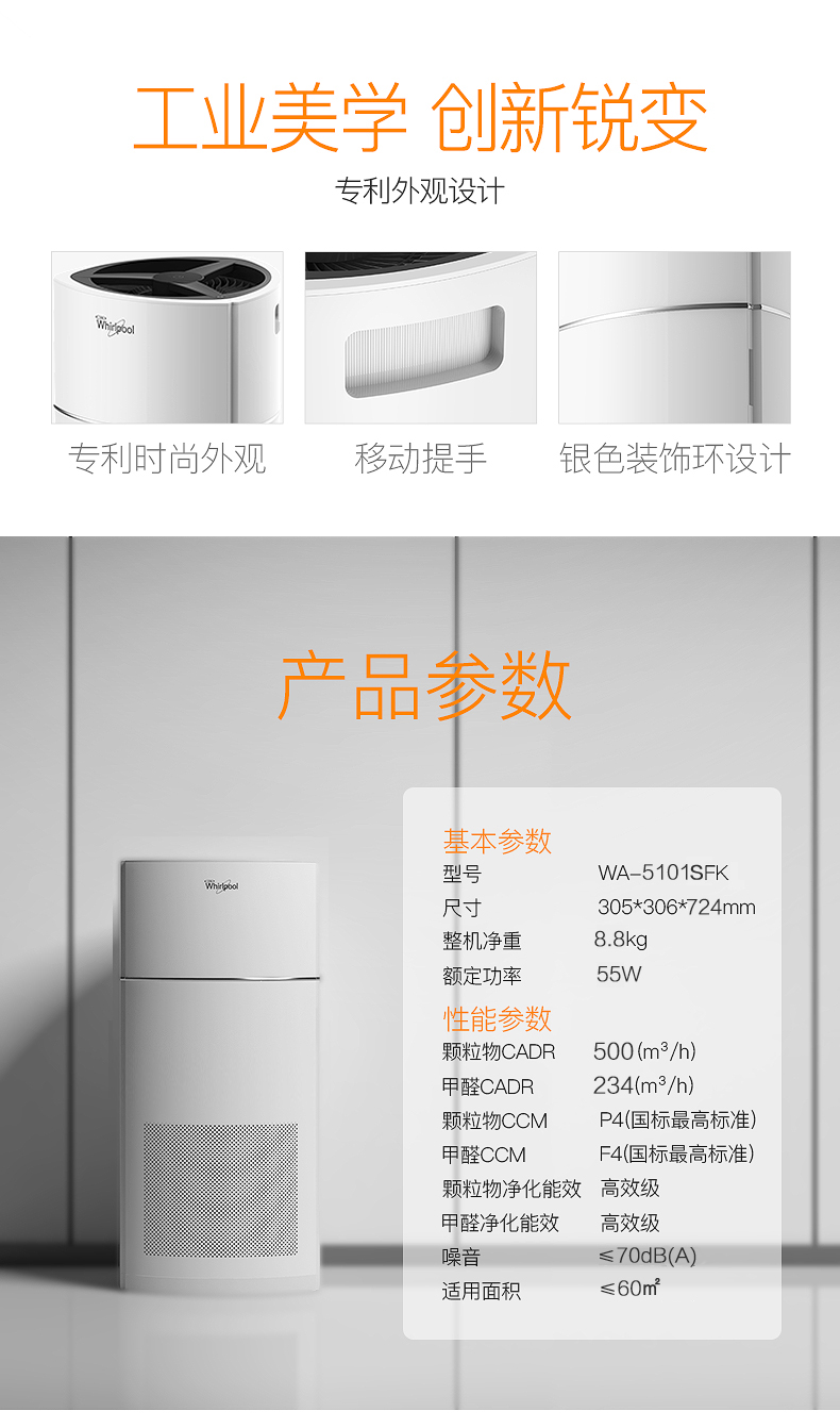 【官方发货】美国惠而浦WA-5101SFK空气净化器家用卧室除甲醛智能