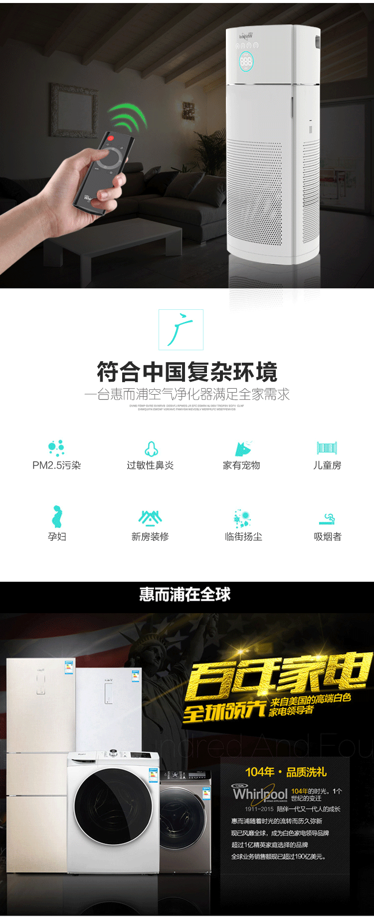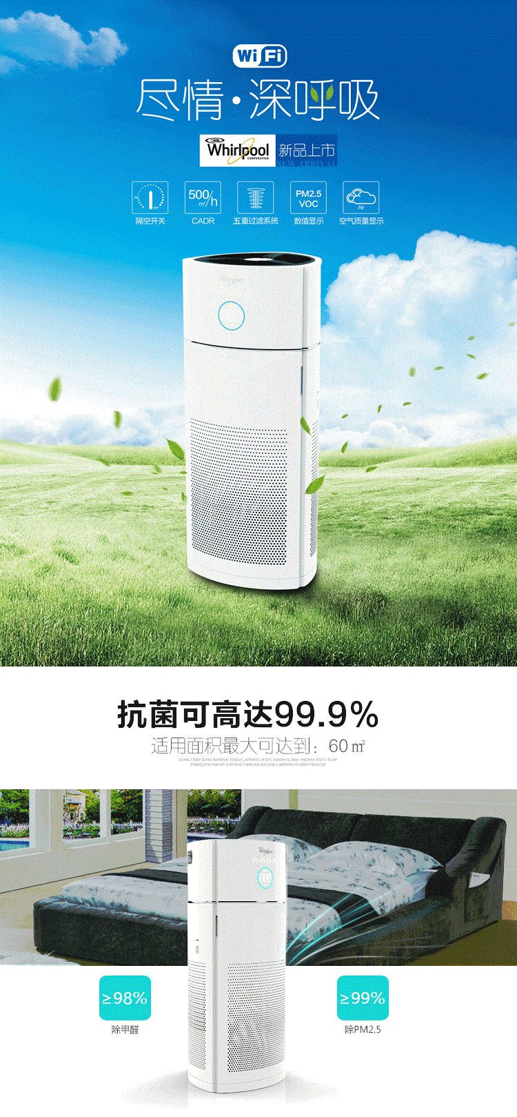 [惠而浦(Whirlpool)官方店空气净化,氧吧]【官方发货】美国惠而浦WA-5101月销量3件仅售4999元