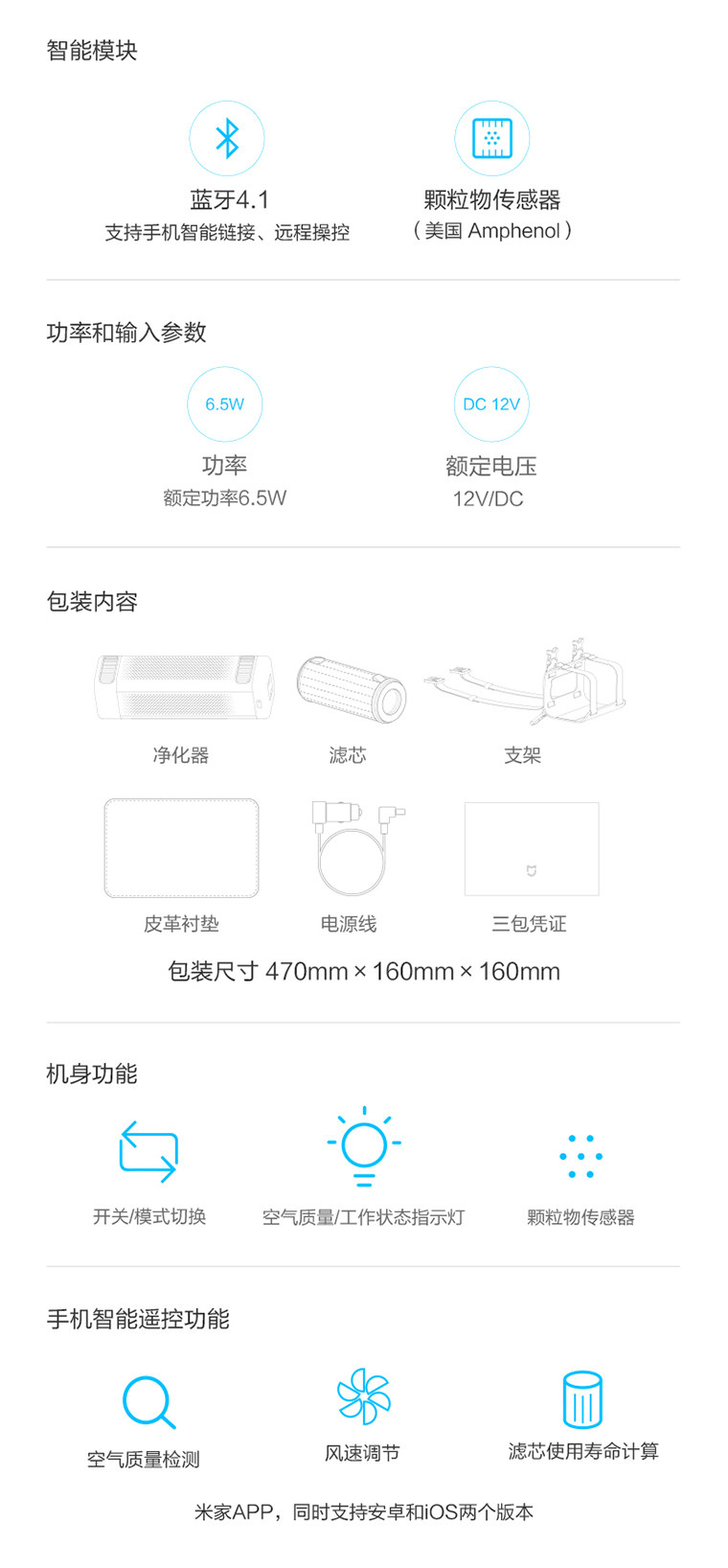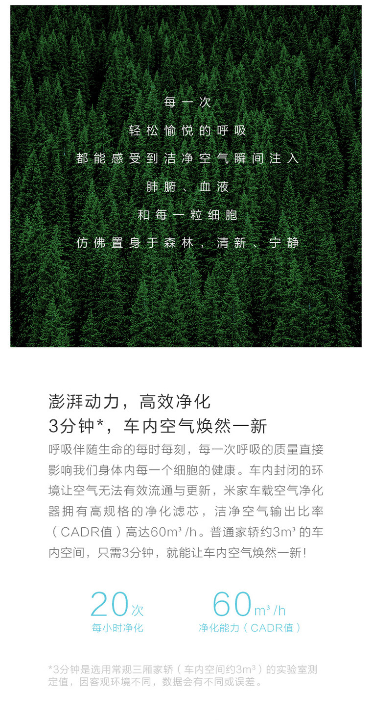 • 颜色分类:米家车载空气净化器(普通快递) 米家车载空气净化器(顺丰快递) 空气净化器+普通滤芯 空气净化器+除甲醛滤芯 空气净化器普通滤芯 空气净化器除甲醛滤芯
