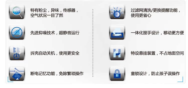• 工作原理:活性炭 负离子 HEPA技术 其他