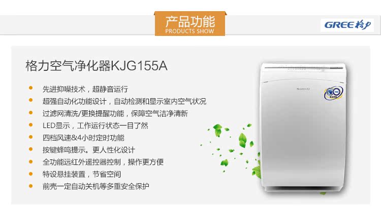 Gree/格力空气净化器 专业除甲醛 除pm2.5 KJG155A 活性炭 杀菌