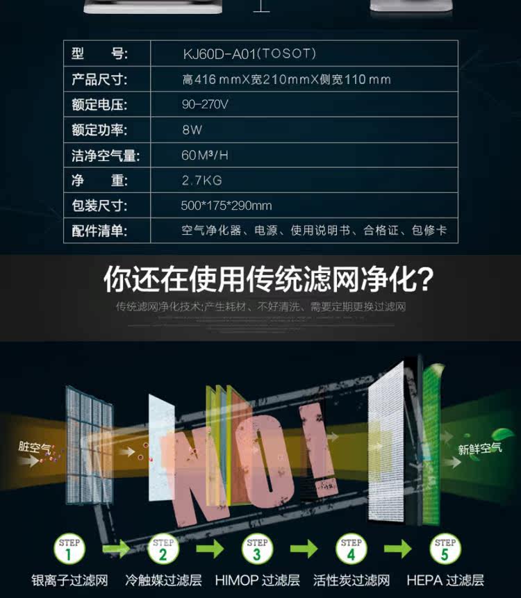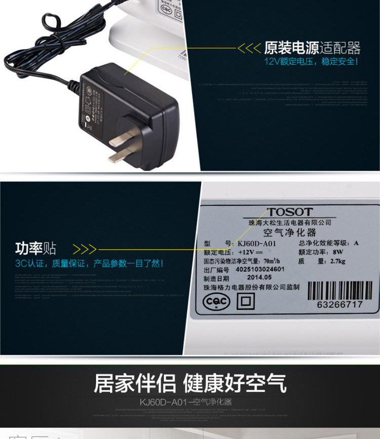 TOSOT/大松 KJ60D-A01格力空气净化器静音节能无耗材小型迷你家用